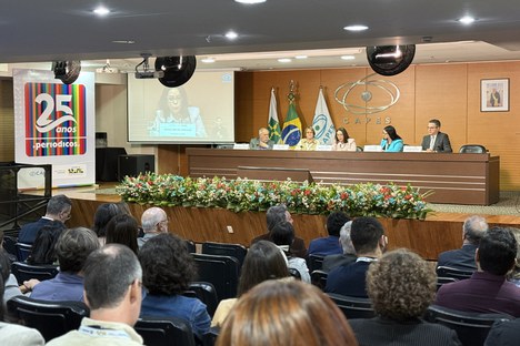 Primeira imagem: Mesa do evento de 25 anos do Portal de Periódicos da CAPES (Julia Prado - CGCOM/CAPES)
